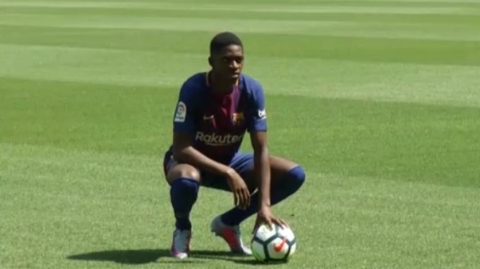 El traspaso del delantero de 20 años, proveniente del Borussia Dortmund, costó 105 millones de euros y se concretó luego de que el astro brasilero Neymar saliera del equipo catalán en medio de polémicas, escándalos y demandas.