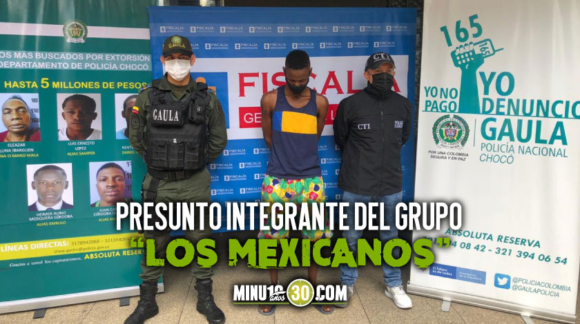 Las autoridades de Quibdó adelantaron la captura de H. A. Mosquera Córdoba alias ‘Embulo’ de 23 años de edad, presunto integrante del grupo de delincuencia común y organizada “Los Mexicanos”.
