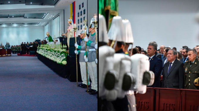 El homenaje que se dio a las 9:00 de la mañana, inició con una eucaristía en el centro cultural de la institución de formación policial, al sur de Bogotá.