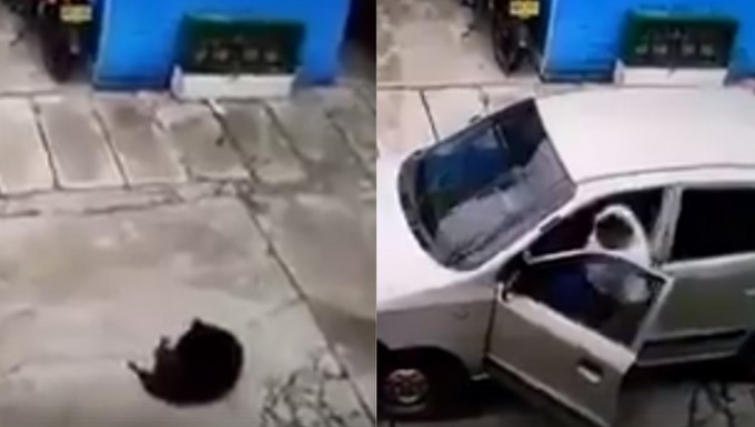 En la grabación se puede observar que el animalito se encuentra en la calle, cuando aparece un vehículo particular, conducido a baja velocidad y le pasa por encima al can.