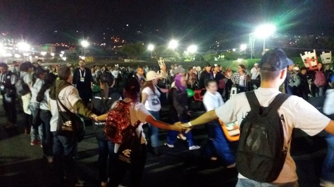 Cientos de feligreses se unieron en una cadena humana para controlar el ingreso de las personas a la pista.