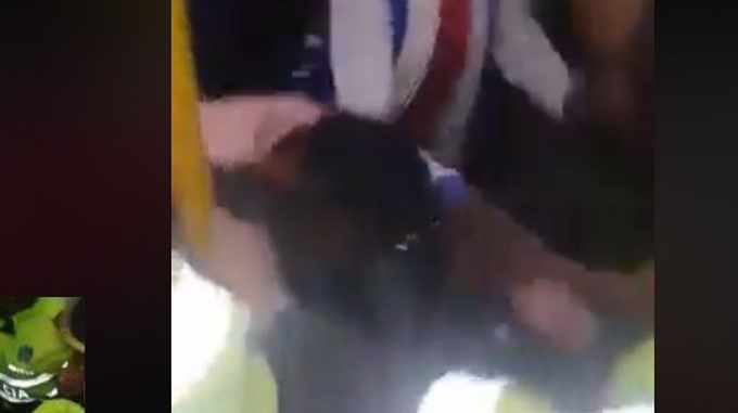 En medio de la discusión el patrullero dice en voz alta “esta hp vieja”, la toma del cabello y la intenta bajar. Aunque los presentes tratan de que suelte a la mujer, este la toma con más fuerza y la baja por completo del bus, al igual que a la pequeña.