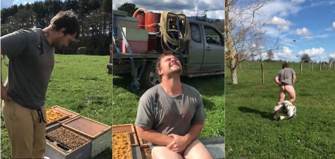 Jamie Grainger, un granjero de Nueva Zelanda, apostó con sus amigos mil dólares a que era capaz de sentarse, sin pantalones, en una panal lleno de abejas durante 30 segundos.