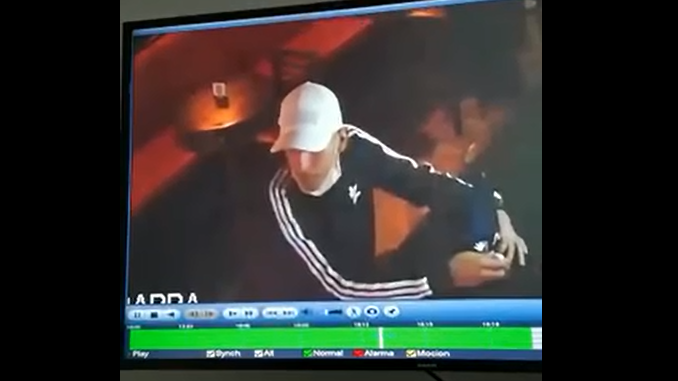 En el video que registraron las cámaras de seguridad del sitio se observa cómo un joven ingresó al lugar y durante varios minutos se hizo pasar por cliente, mientras inspeccionaba el local. Luego, se le acerca a un comensal y lo atraca.
