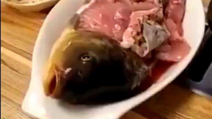 En clip se puede observar a varias personas consumiendo mariscos y pescados frescos, tanto que muchos de ellos son desfilados o escaldados vivos, y aún reaccionan abriendo la boca o retorciéndose en los platos.