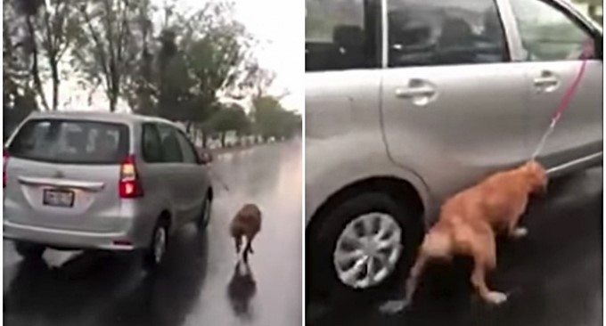 La persona que grabó el video le grita a la familia que pare y suba al perro, sin embargo, este es arrastrado durante varios metros hasta que otro vehículo los obliga a detenerse y un joven se baja y se va caminando con el can.