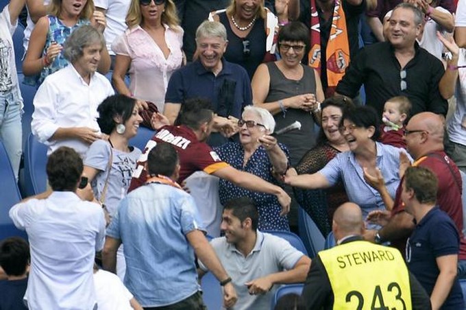 Minuto30.com.- Alessandro Florenzi jugador de la Roma de Italia fue sancionado y multado por marcar un gol y salir del campo de juego a celebrarlo con su abuela que estaba en la gradería.
