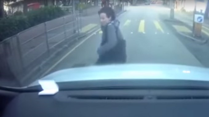 Por fortuna el señor que conducía tenía una cámara en el vehículo y quedó registrado el momento exacto en el que la mujer finge el accidente.
