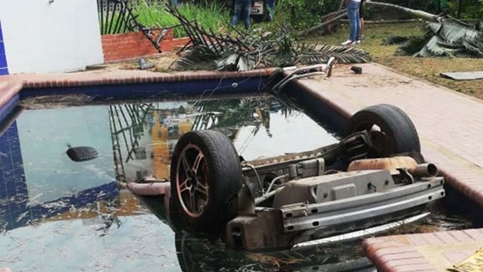 El vehículo que era conducido por una adolescente de 16 años perdió el control, impactó contra un muro y terminó en la piscina de una unidad residencial.