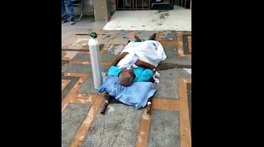 En el video se ve como el paciente es dejado en la camilla, a pocos metros de la entrada sin que nadie pueda hacer nada. Fue entonces cuando el abuelo presentó mayor dificultad respiratoria y murió 20 minutos más tarde.