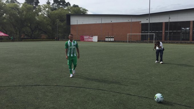 En su presentación, que se cumple en el predio campestre con la presencia de hinchas, el deportista habló de la “grandeza” del club Verdolaga.