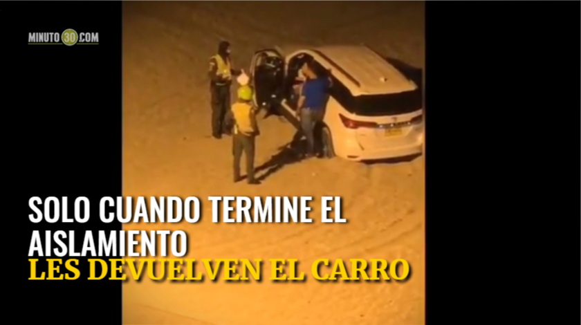 En video quedó registrado el momento en el que un grupo de personas fueron multadas en la ciudad de Santa Marta por infringir las medidas de aislamiento obligatorio y llevar una carro a la playa.