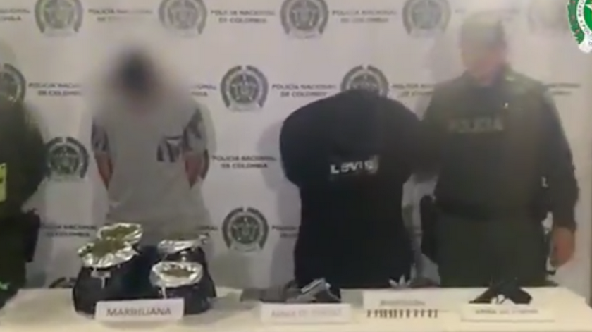 Según el reporte de las autoridades, a estos hombres se le halló al interior de dos morrales que portaba, 750 gramos de marihuana, 450 cigarrillos de este estupefaciente, 530 gramos de base de coca y 2 armas de fuego.