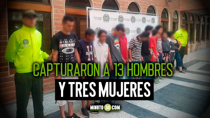 Se hicieron efectivas las capturas de 13 hombres y tres mujeres todos mayores de edad, por los delitos de concierto para delinquir agravado, y tráfico, fabricación y porte de estupefacientes, quienes fueron dejados a disposición de la autoridad judicial competente.