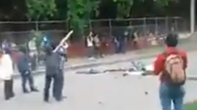 Manifestantes intentan atacar a la Policía, foto: captura de video.