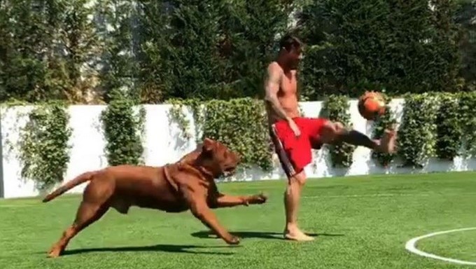 El crack argentino Lionel Messi que por estos días disfruta de sus vacaciones se dejó ver jugando fútbol con su mascota.