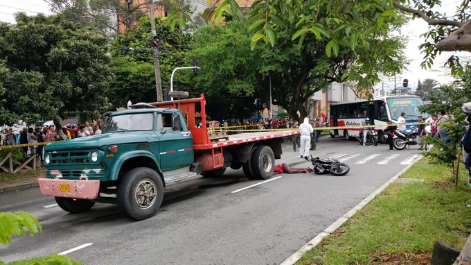 En los hechos que se presentaron en la avenida Guayabal con la calle 9 A Sur , sentido sur- norte, están involucrados un vehículo tipo volqueta y una motocicleta.