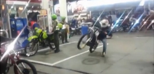 Según la descripción del video, el hecho se registró el pasado 11 de diciembre en una estación de gasolina ubicada en la Loma del Escobero en Envigado, donde el grupo de motociclistas se citó para iniciar un recorrido por los alumbrados navideños.