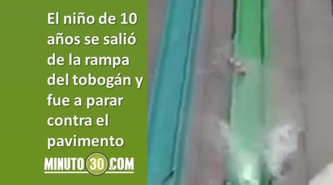 Minuto30.com .- Un aparatoso accidente se registró durante la reinauguración de un parque acuático en California, Estados Unidos. Un niño de solo 10 años, que se lanzó de un gigantesco tobogán de tres pisos salió despedido de este al momento que llegaba a la base.