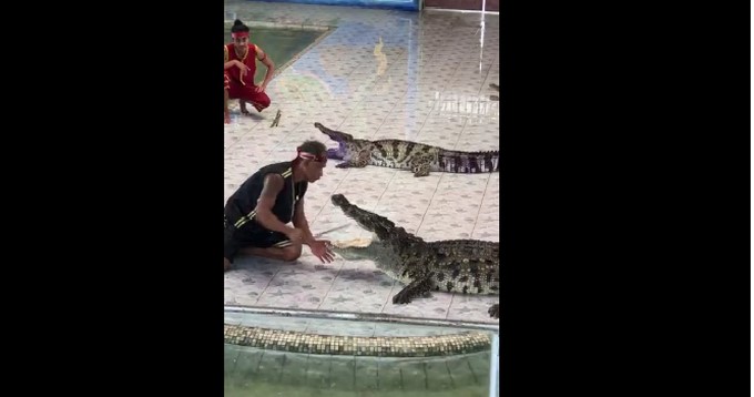 Un cuidador tailandés fue mordido por el cocodrilo con el que realizaba algunos ejercicios.