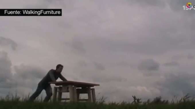 Es el caso de esta novedosa mesa, que “se ayuda” cuando alguien la empuja. Pues sus patas se mueven, haciendo que el mueble camine…
