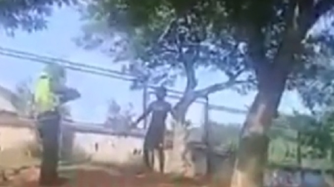 El video fue difundido por el medio Política Heroica, desde donde aseguraron que “un hombre ingresó a la institución educativa de San Cayetano con un palo en la mano dispuesto a hacerle daño a alguien”. Por este motivo el Policía trató de detener al sujeto y éste mostró resistencia.
