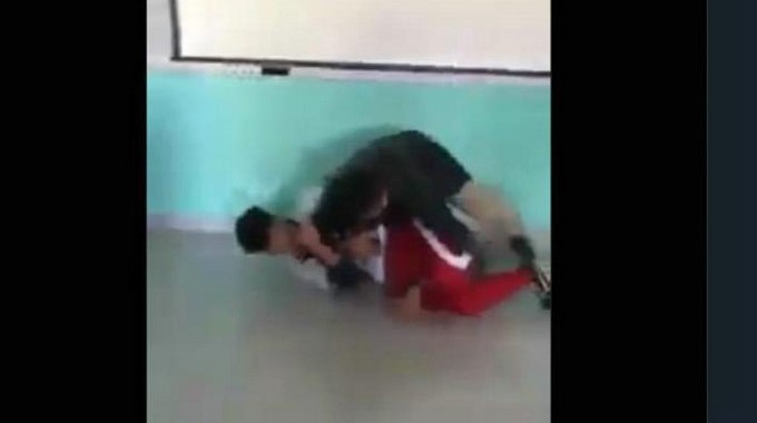 El video de la gresca que se hizo viral en las redes sociales, muestra cómo ambos se dan golpes, pero es el adulto él qué más violento golpea al menor de edad.