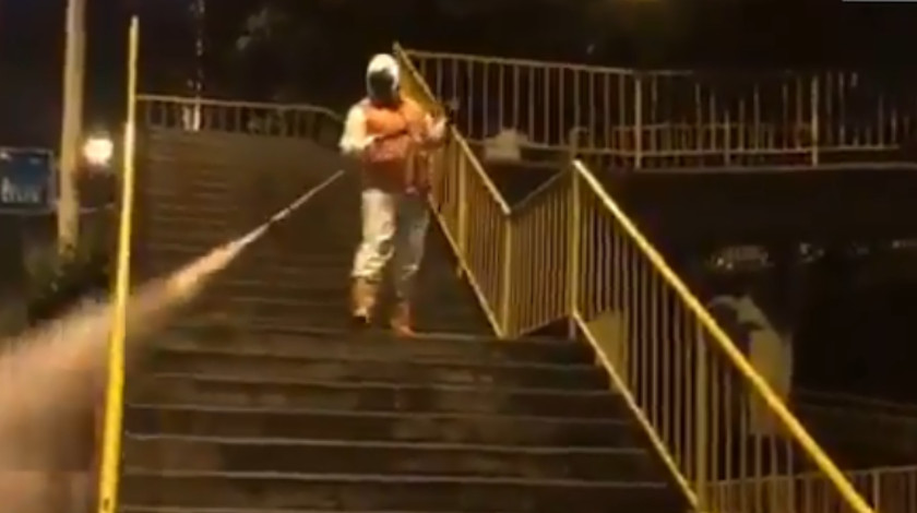Según la entidad, esta labor de desinfección la realizan sus funcionarios en los puentes peatonales de Medellín.