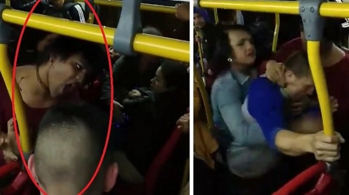 El video muestra el momento en el que dos hombres, uno de ellos travesti, se van a golpes con un tercer hombre que inicialmente continúa la agresión a patadas. Sin embargo, este tercer hombre termina tirado en el suelo del vehículo y aparentemente bastante herido.