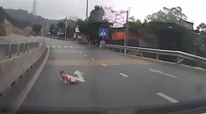 Medios de comunicación de todo el mundo han difundido el insólito vídeo en el que puede observar a un bebé gateando en plena carretera.