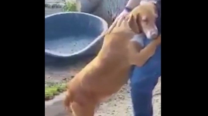 El canino no pudo aguantar sus ganas de brindar amor y montó sus patas en las piernas del periodista como queriendo abrazar al reportero.