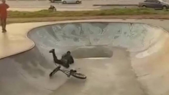 En el video que fue publicado en las redes se ve al joven bachiller montar en una bicicleta e intentar una pirueta que le salió bastante mal, el joven termina contra el asfalto.