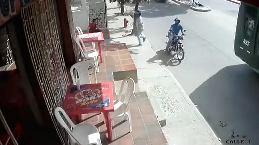 Cómo se ve en el video el ciudadano se encuentra descansando en una tienda, cuando llegaron unos sujetos en una moto, se baja uno y lo amenaza con una supuesta arma: