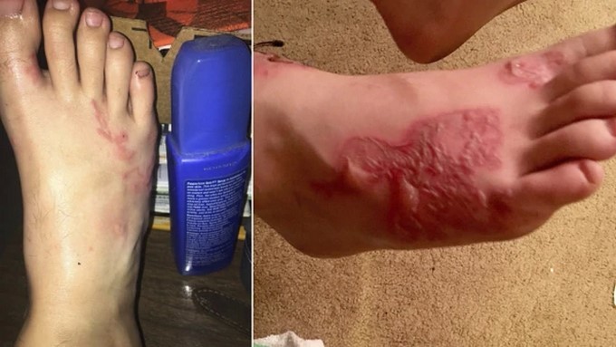 El joven tiene heridas por todo su cuerpo, principalmente en las piernas, pies y trasero. “No está bien. Tiene heridas abiertas en los pies y en la parte interior y exterior de las piernas. No ha podido ir a sus prácticas de football. No puede usar zapatos”.