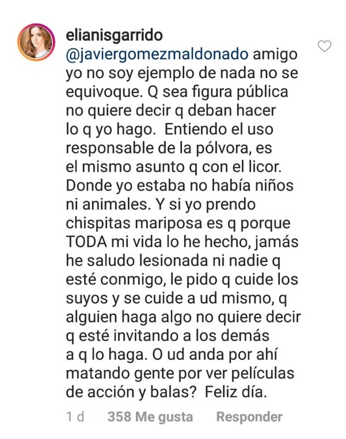En los comentarios la también actriz fue criticada y muchos aseguraron que debería ser más “consciente” con el ejemplo que da a sus seguidores, a lo que ella respondió: