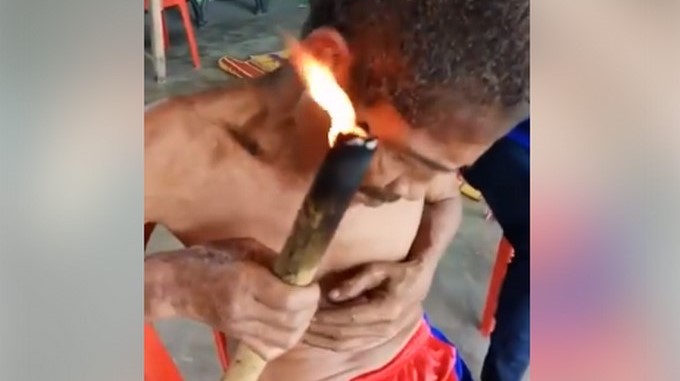 Resulta que el hombre se estaba “motilando” con fuego tal y como se puede observar el vídeo.