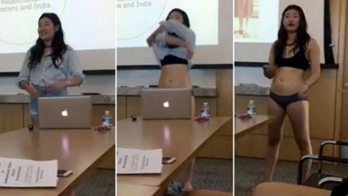 Así que la joven decidió darle una “lección” a su profesora y se desnudó en medio de la presentación de su tesis: “Yo no soy responsable de la atención de nadie, porque cada uno es capaz de pensar por sí mismo y además tenemos libertad de elección. No voy a cambiar mi forma de vestir para hacer que usted u otras personas se sientan más cómodos”, indicó la joven en forma de protesta.
