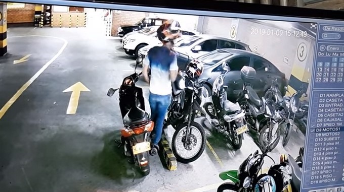 Se evidencia cuando saca de su bolso una herramienta para romper la seguridad del casco y podérselo llevar.