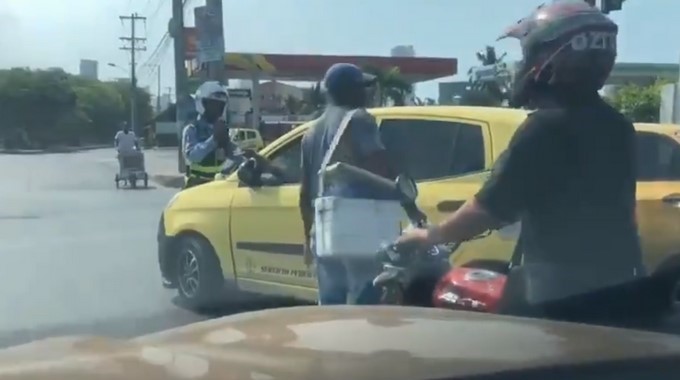 En video quedó registrado el momento exacto en el que un taxista arremete contra un guarda de tránsito y se lo lleva por delante con el carro, en Cartagena.