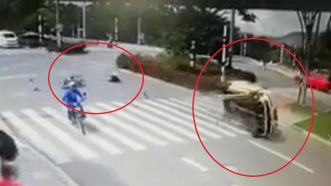 Como se puede observar en el video, el choque fue tan fuerte que el taxi terminó volcando debido al impacto. Por su parte, la motocicleta se partió en varios pedazos.