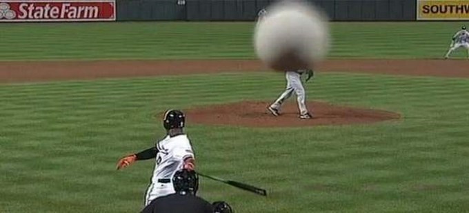 Minuto30.com.- En un encuentro de Béisbol sucedió la extraña jugada, Adam Jones estaba parado en el montículo y cuando la pelota le llegó bateó hacia atrás con tan mala fortuna de pegarle a la cámara rompiéndole el lente HD.