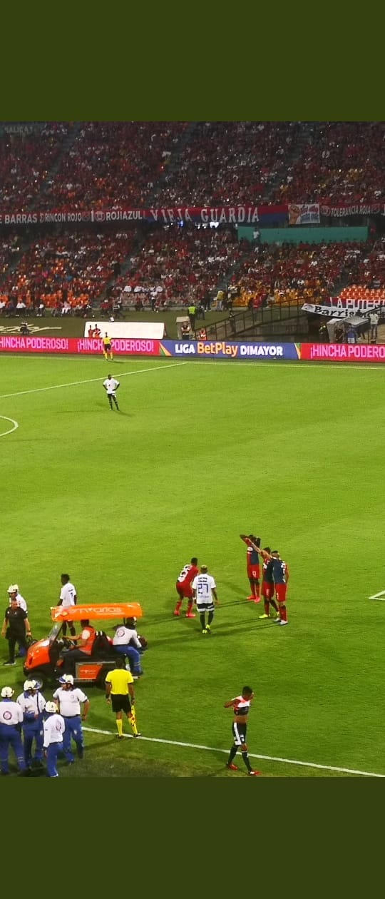 Lesión muy fuerte de Yulian Gómez lateral del DIM, salió llorando y no hubo más tomas por la gravedad de la lesión. pic.twitter.com/LnAlIbswGB