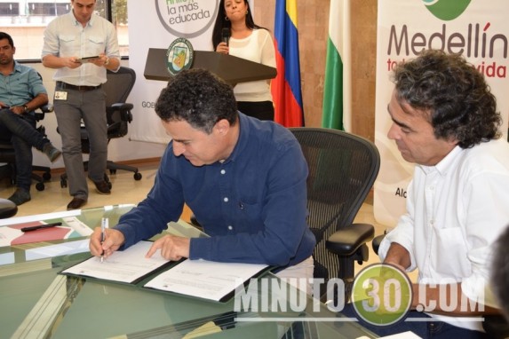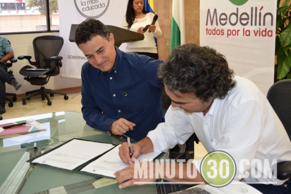 Minuto30.com.- El Gobernador de Antioquia, Sergio Fajardo, y el Alcalde de Medellín, Aníbal Gaviria, firmaron el convenio de asociación de entre el Departamento y el Municipio para la planeación y construcción del Túnel del Toyo, una megaobra que estará ubicada en el municipio de Cañasgordas, en el Occidente antioqueño, para conectar en 4 horas a Medellín con la región del Urabá.