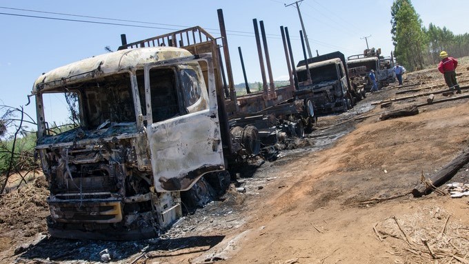 El fiscal de Angol, Carlos Cornejo, señaló a Radio BioBío que los responsables son un grupo de al menos cuatro personas que ingresaron al fundo con armas, amenazaron a los conductores para hacerlos bajar de los camiones y posteriormente los quemaron.