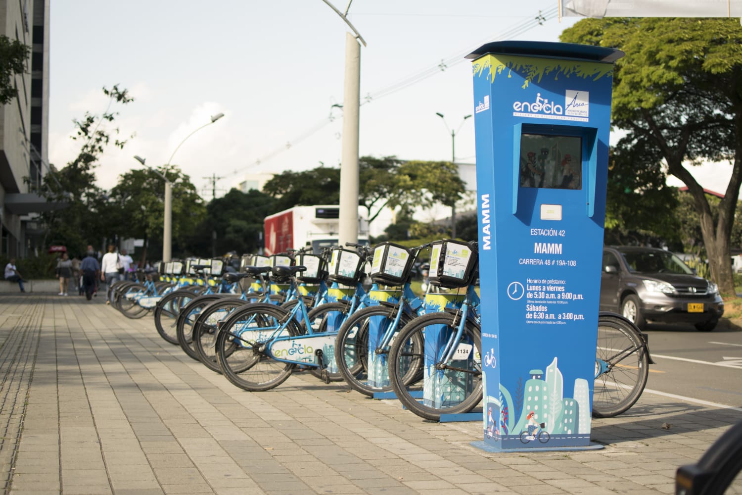 Este sistema, que inició con 6 estaciones y 105 bicicletas, hoy cuenta con 2.000 ciclas, y 103 estaciones en cinco de los 10 municipios que conforman esta subregión antioqueña: Medellín, Envigado, Itagüí, Sabaneta y en días pasados se inauguraron las dos primeras estaciones del norte, en el municipio de Bello.