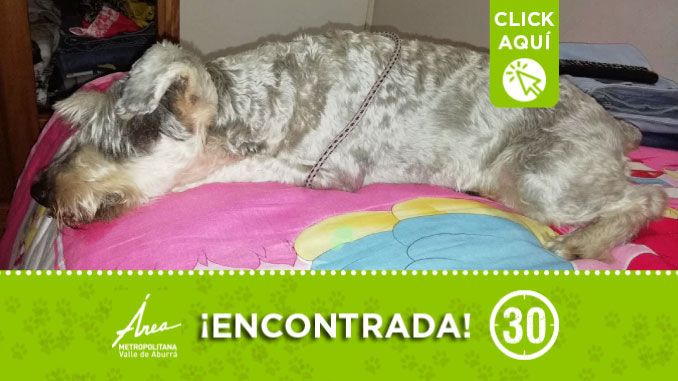Esta perrita fue encontrada por el sector cercano a la unidad Reservas del Seminario en Quinta Linda, Medellín.