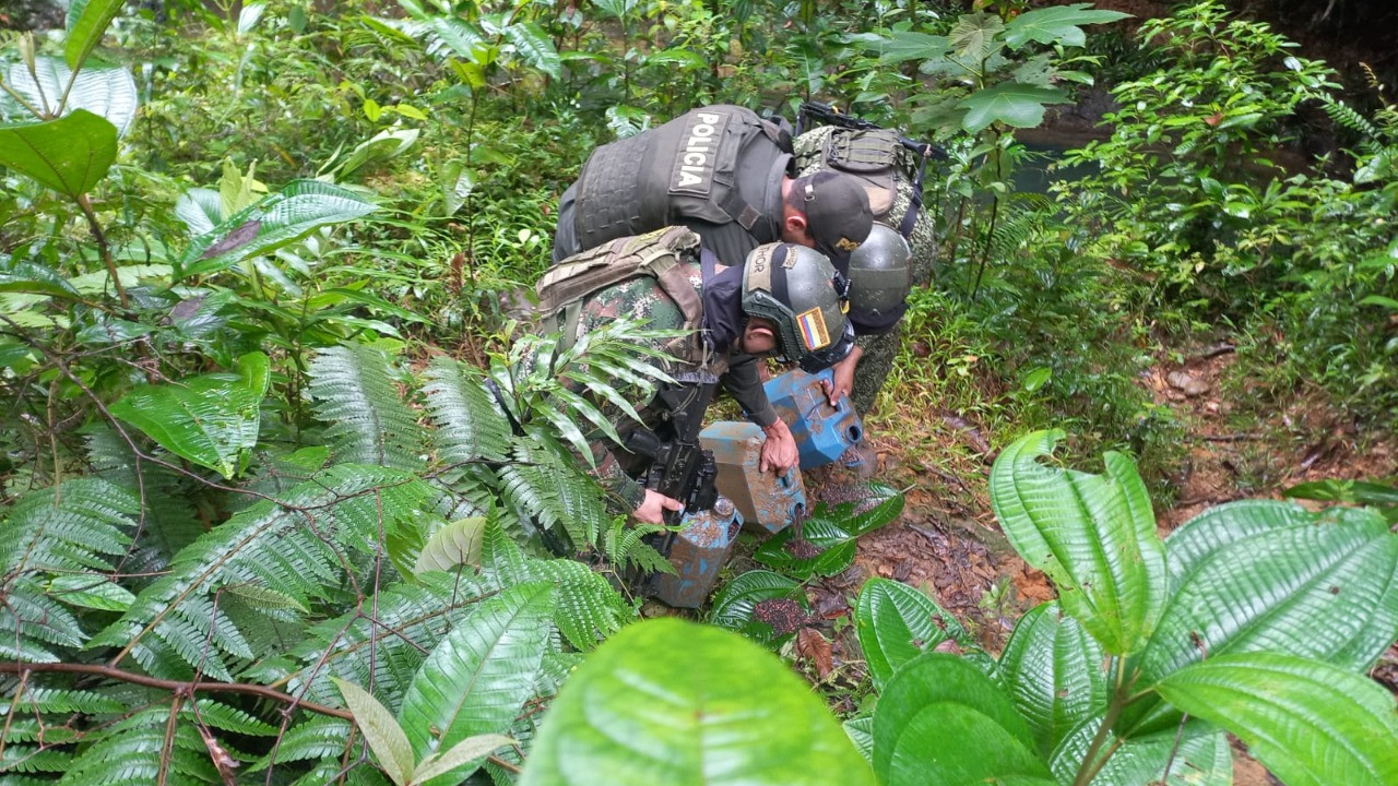 Después de labores de registro a los alrededores, hallaron el material explosivo que, según las autoridades, pertenecería a la ‘estructura 6 columna móvil Jaime Martínez’ y “sería utilizado en contra de la Fuerza Pública como retaliación por los contundentes golpes propinados a esta organización criminal en los últimos meses”, informó la Armada.