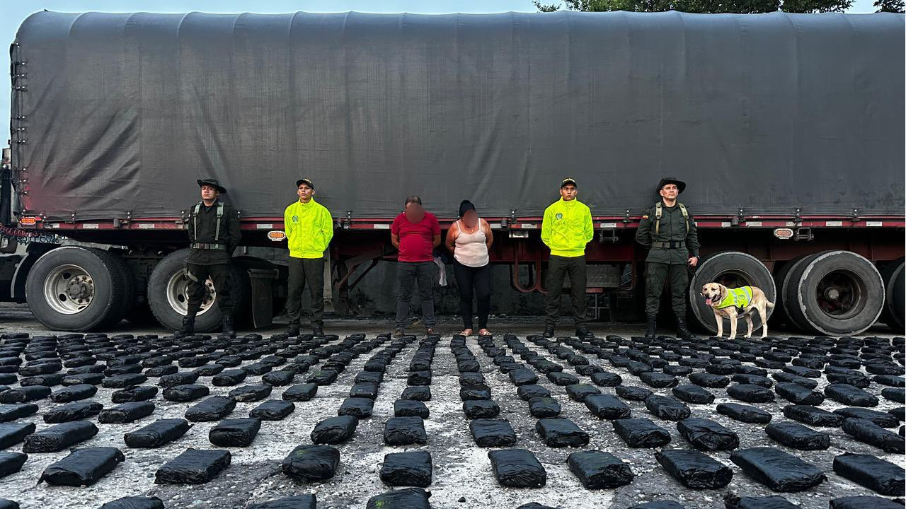 En ese procedimiento, desarrollado en el peaje de Chusacá en Sibaté, Cundinamarca y en total encontraron 1.322 kilos que iban camuflados en una tractomula. En esa acción fue capturado el conductor del pesado vehículo.
