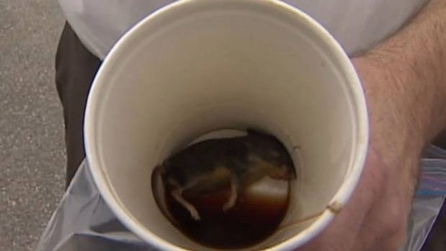 Morais contó que de camino al trabajo compró un café en un establecimiento de la compañía de comida rápida y que se lo bebió tranquilamente hasta que encontró al roedor en la parte inferior de la taza.