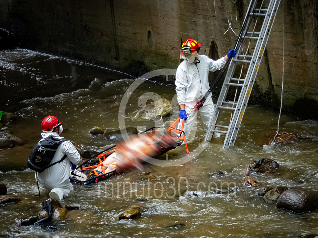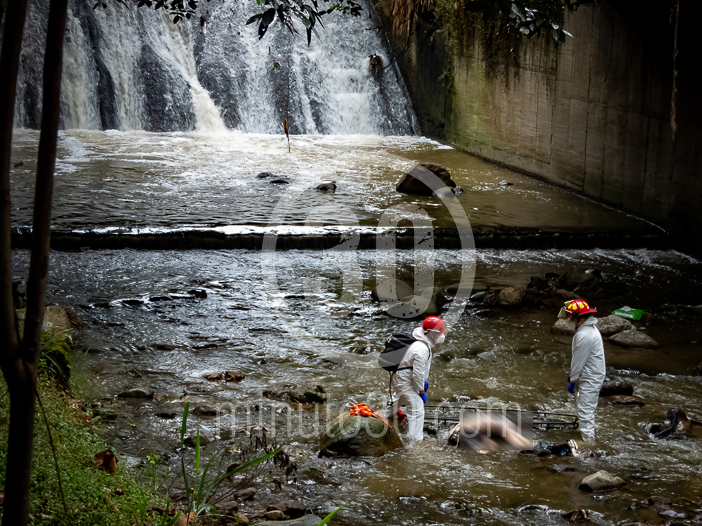 El capitán Luis Bernardo Morales, comandante del Cuerpo de Bomberos Voluntarios de Envigado, narró que hacia las 5 de la mañana informaron del hallazgo del cadáver en el cauce de la quebrada, a la altura del Centro Comercial Villa Grande.